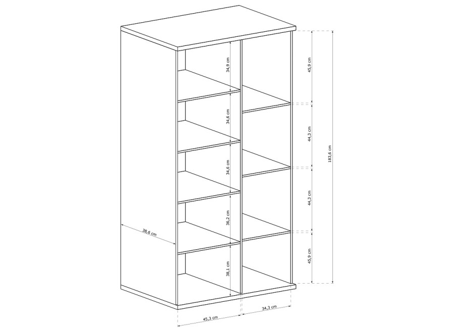 CALI C01-KN, šatníkovo-policová skriňa na kovových nohách