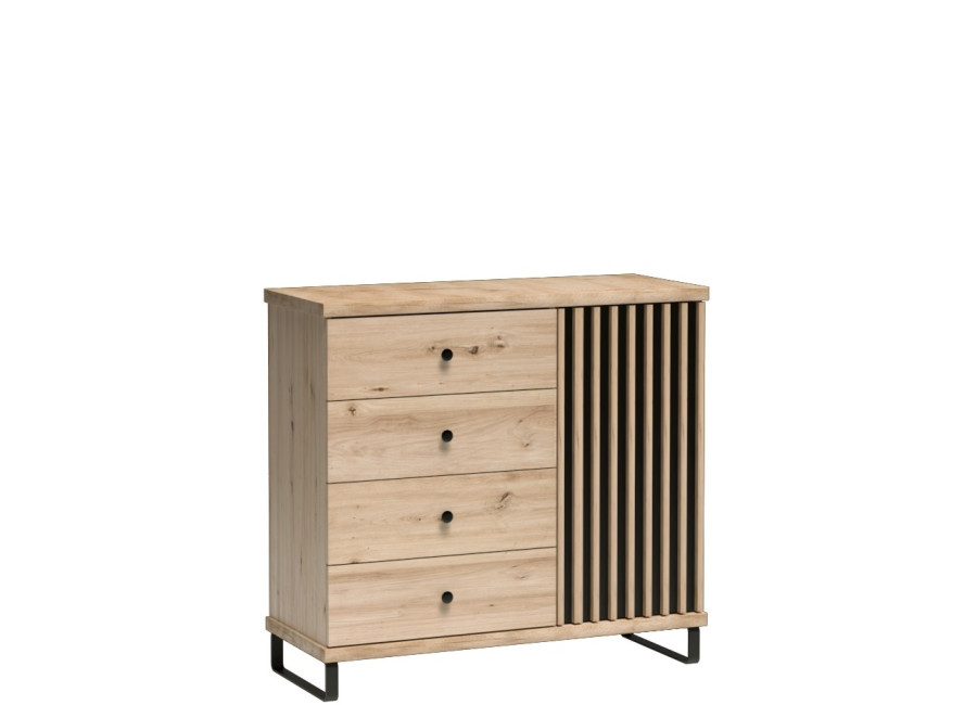 Kolekcia nábytku CALI má zaujímavý dizajn. Je úžasnou kombináciu vertikálnych lamiel na tmavom pozadí, pričom jednu lamelu využíva ako úchytku. Krásne farebné prevedenie sa hodí do každého interiéru. Všetky skrinky je možné objednať s 10cm kovovými nožičkami, ktoré uľahčia upratovanie.