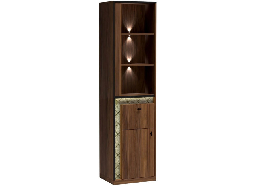 Kolekcia SENESI má teplú orechovú farbu v talianskom štýle nábytku. Dekoračné lišty sú vyrobené z borovicového dreva, moreného do čiernej farby, ktorú môžete krásne podsvietiť LED osvetlením.