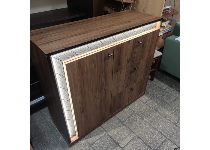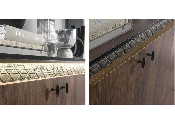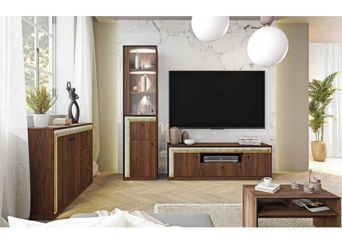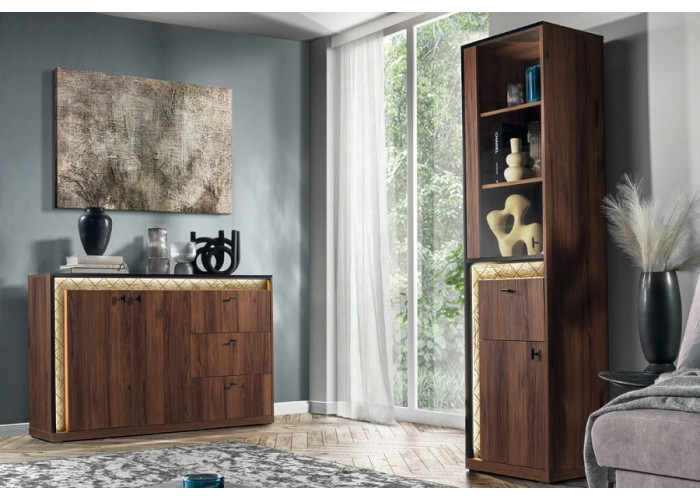 Kolekcia SENESI má teplú orechovú farbu v talianskom štýle nábytku. Dekoračné lišty sú vyrobené z borovicového dreva, moreného do čiernej farby, ktorú môžete krásne podsvietiť LED osvetlením.