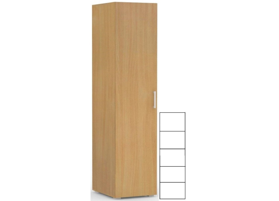 Policová skriňa REA VENEZIA 1 do spálne je ideálnym úložným priestorom na oblečenie, do ktorejkoľvek časti spálňovej steny zo sektorového nábytku REA VENEZIA. Skriňa má vo vnútri celkom štyri police a úložný priestor je rozdelený na päť rovnakých častí. Policová skriňa má univerzálne otváranie dverí, t.j. otvárať dvere je možné ako sprava doľava, tak aj zľava doprava. Pánty dverí skrine je možné pripevniť na ľavej alebo pravej strane. Šatníková skriňa do spálne je vyrobená z laminovanej drevotrieskovej dosky.
