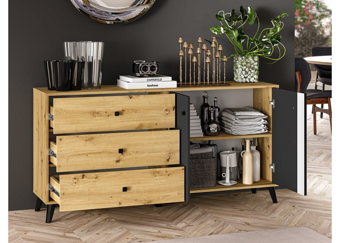 | Farebné prevedenie | dub artisan + čierna matná + čierne plastové úchytky a nožičky |