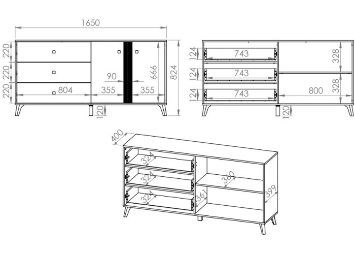 Nábytok ELIZABETH je moderná a elegantná kolekcia sektorového nábytku. Výrazná kombinácia dubu artisan s čiernymi úchytkami a nožičkami je dokonalým riešením zariadenia obývacej izby. Čierne dvierka majú ozdobný pás.