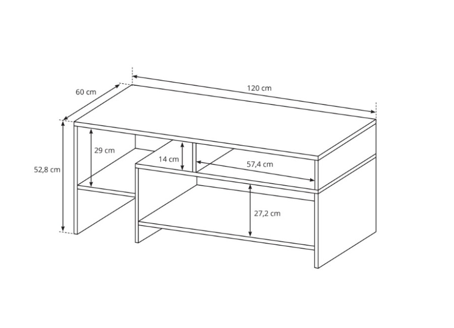 Konferenčný stolík: výška: 53 cm, šírka: 120 cm, hĺbka: 60 cm.