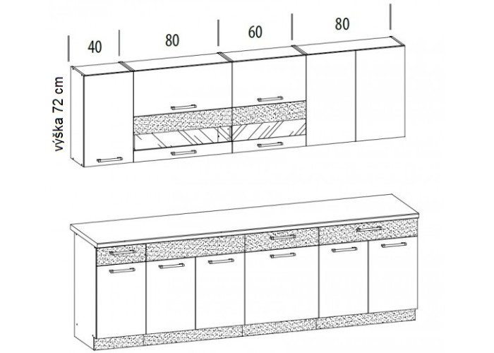 | Celková dĺžka horných skriniek | 260 cm |