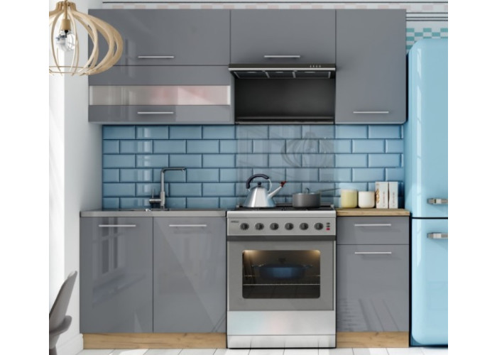 TIFFANY 120/180 sivý lesk, kuchynská linka v dĺžke 180 cm