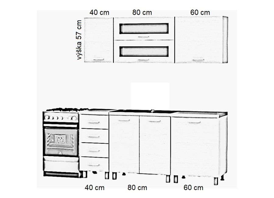 | Výška horných skriniek | 57 cm |