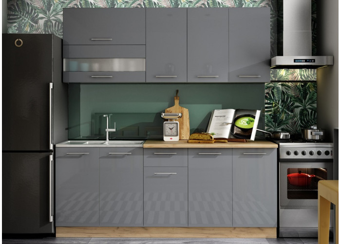 TIFFANY 200 sivý lesk, kuchynská linka 200 cm