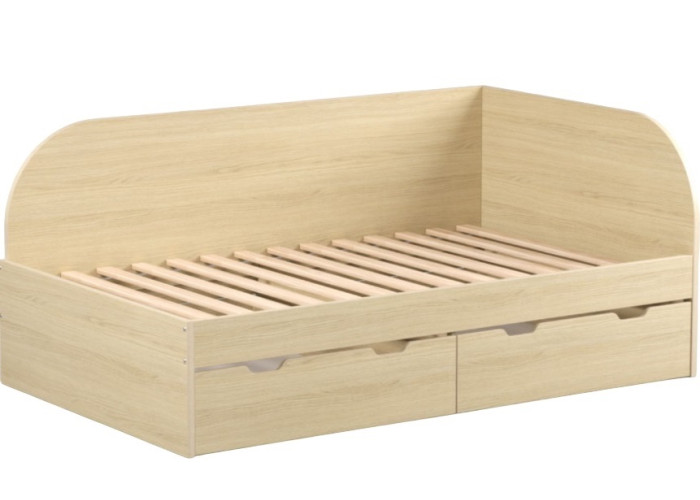 Moderná študentská posteľ 120x200 s úložným priestorom REA GARY do detskej izby je vyrobená z kvalitnej laminovanej drevotrieskovej dosky. A keďže bezpečnosť detí je pre nás prioritou, tak posteľ má na okrajoch zaoblené čelá bez ostrých hrán, ktoré sú spojené pevnou bočnicou. Pod lôžkom na spanie sa nachádzajú dve praktické zásuvky s úložným priestorom napríklad na detské hračky alebo periny, ktoré jednoducho vysuniete vďaka kolieskam na spodnej strane. Odporúčaná hmotnosť jedného jedinca na posteľ je max. 150 kg.