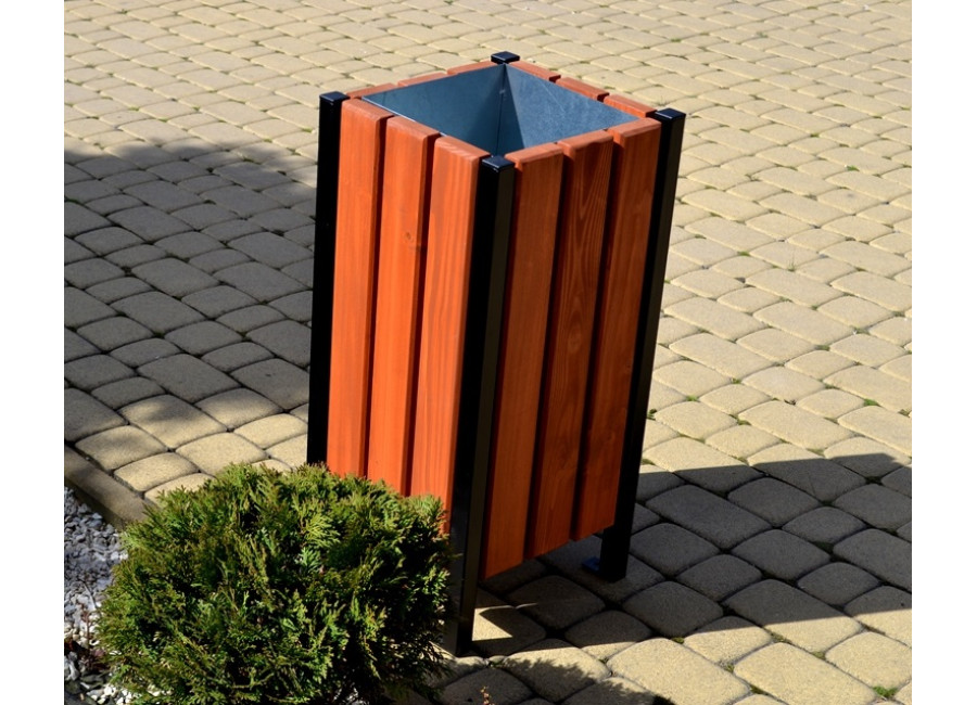 Predstavujeme Vám vonkajší odpadkový kôš K039 s objemom 35 litrov – ideálnu voľbu pre mestá, obce alebo firmy, ktoré hľadajú odolné a esteticky príjemné riešenie pre vonkajšie prostredie. Tento vonkajší odpadkový kôš je vyrábaný z robustných oceľových profilov 30x30x2 mm, zaručujúcich pevnosť a dlhú životnosť. Celá konštrukcia je farbená čiernou antikoróznou farbou s práškovým nástrekom, ktorý poskytuje extra ochranu proti poveternostným vplyvom a predlžuje jej životnosť aj v tých najnáročnejších podmienkach.