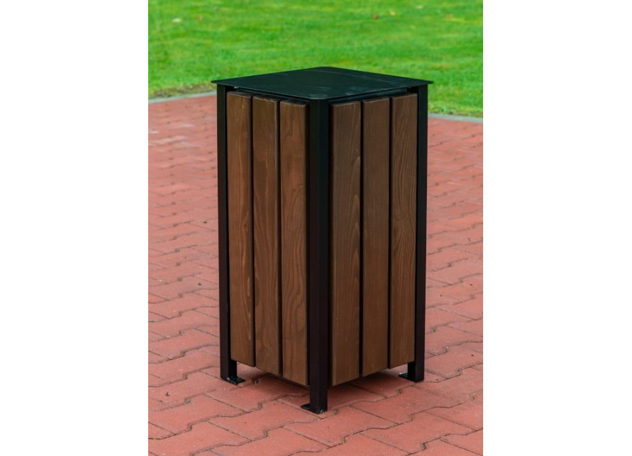 Celá konštrukcia je potiahnutá čiernou antikoróznou farbou s práškovým nástrekom, poskytujúcim extra ochranu proti poveternostným vplyvom. Oceľové časti odpadkových košov sú dôkladne pozinkované ešte pred lakovaním, čím zaručujeme dlhodobú odolnosť voči korózii. Navyše, oceľový povrch môžeme prispôsobiť farbou podľa Vašich preferencií z palety RAL – neváhajte nás kontaktovať pre individuálne riešenie.