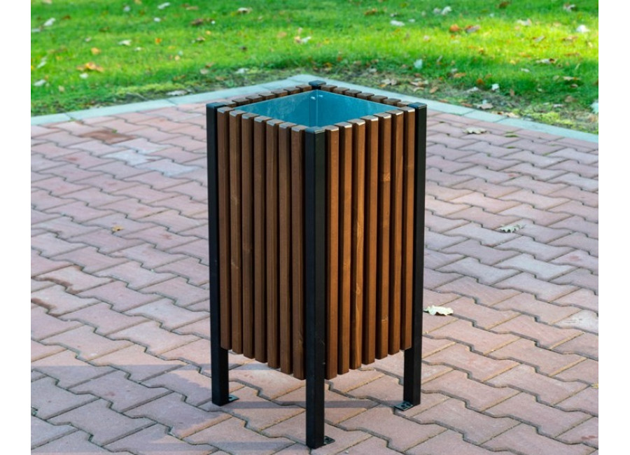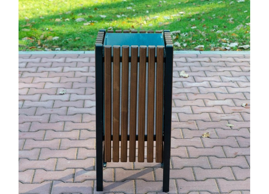 Kôš je vyrábaný z vysoko kvalitných oceľových profilov 30x30x2 mm, čo mu dodáva robustnosť a dlhú životnosť. Celá konštrukcia je pokrytá čiernou antikoróznou farbou s práškovým nástrekom, ktorý poskytuje extra ochranu proti poveternostným vplyvom. Pre zabezpečenie maximálnej odolnosti sú oceľové časti odpadkového koša pred lakovaním vždy pozinkované. Ak preferujete inú farebnú kombináciu, oceľ môže byť nalakovaná na akúkoľvek farbu z palety RAL podľa Vašich preferencií. Stačí nás len kontaktovať.