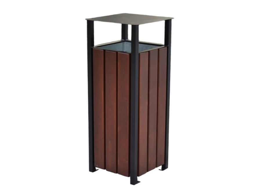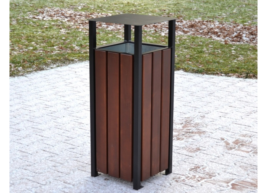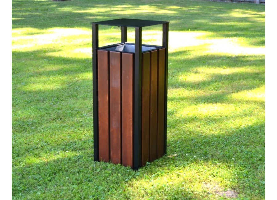 Pre maximálnu ochranu sú všetky oceľové časti odpadkového koša pred lakovaním vždy pozinkované. Oceľ sa dá nalakovať na akúkoľvek farbu z palety RAL podľa Vašich preferencií – stačí nás kontaktovať pre individuálnu úpravu. Dosky na koši sú starostlivo opracované, brúsené, frézované a ošetrené špeciálnym postupom: najprv sú nastriekané základným náterom a potom kvalitným lakom na drevo. Používame trojvrstvovú lazúru, ktorá poskytuje oveľa lepšiu ochranu než bežná impregnácia.