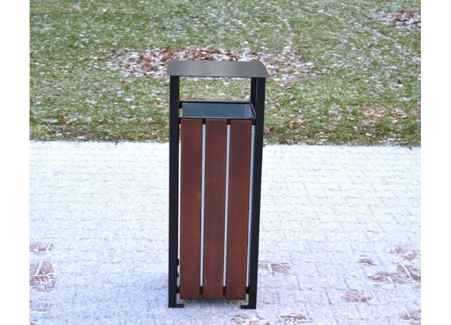 Vonkajší odpadkový kôš K163 s objemom 50 litrov je ideálnym riešením pre mestá, obce alebo firmy, ktoré hľadajú kvalitný mestský mobiliár. Tento odpadkový kôš je vyrobený z odolných oceľových profilov 30x30x2mm, čo zaručuje jeho dlhú životnosť a vysokú odolnosť voči nárazom a mechanickému poškodeniu. Celá konštrukcia je farbená elegantnou čiernou antikoróznou farbou s práškovým nástrekom, ktorá poskytuje extra ochranu proti poveternostným vplyvom.
