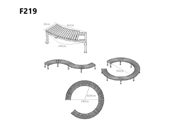 Štvrťkruhová parková lavička F219 je dokonalým spojením funkčnosti, estetiky a odolnosti, a je ideálnou voľbou pre každý mestský mobiliár. Naša lavička do parku prinesie nielen komfort, ale aj eleganciu, ktorá oživí akýkoľvek verejný priestor či súkromnú záhradu. Výnimočnosť tejto parkovej lavičky spočíva v jej modularite - z dvoch kusov je možné vytvoriť polkruh, z troch kusov ¾ kruh a zo štyroch kusov vytvoríte dokonalé okrúhle sedenie. Vnútorný priemer je 240 cm, s pohodlnou hĺbkou sedu 40 cm a vonkajším priemerom kruhu 320 cm.
