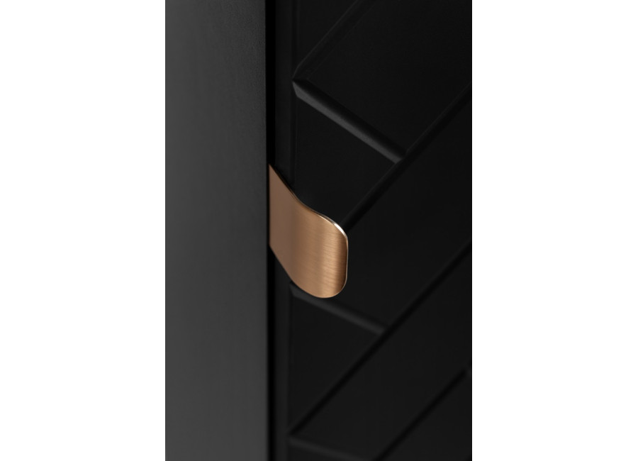 Je vyrobená z 16 mm laminovanej drevotriesky s dvierkami z kvalitného MDF materiálu. Drážkované dvierka s mechanizmom Soft Close nielenže vyzerajú skvele, ale aj zabezpečujú tiché a plynulé zatváranie. A aby ste si ju mohli prispôsobiť presne podľa svojich predstáv, v balení nájdete tri úchytky – v čiernej, striebornej a zlatej farbe. Vyberte si tú, ktorá perfektne ladí s Vašim štýlom.