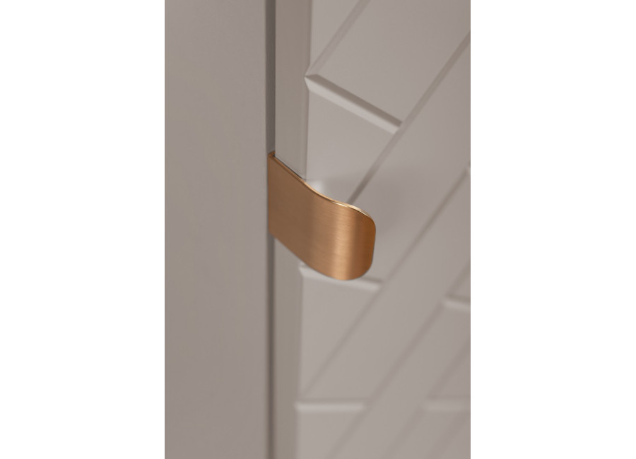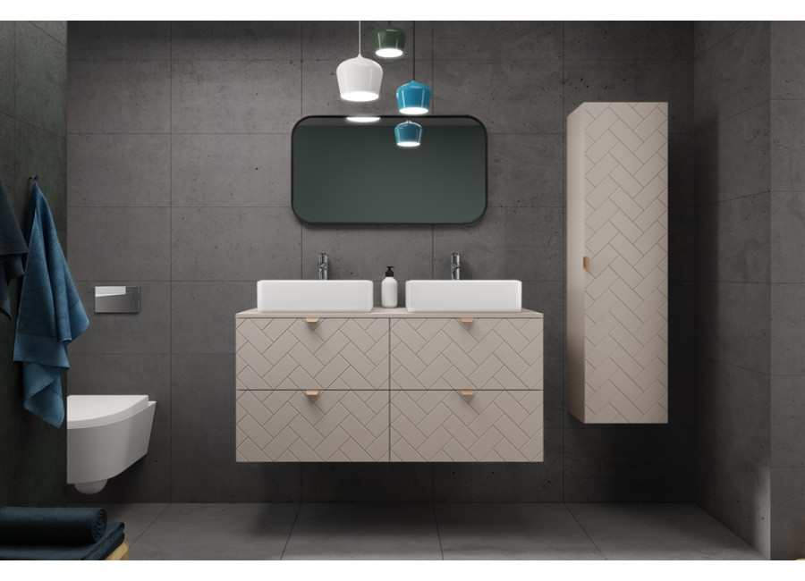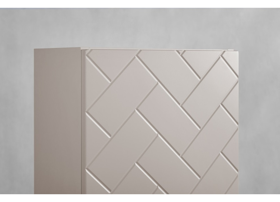 Predstavujeme Vám vysokú skrinku do kúpelne TREND K35 v elegantnom odtieni kašmír. So šírkou 35 cm sa prirodzene začlení aj do kompaktnejších priestorov.. Korpus skrinky je vyrobený z kvalitnej 16 mm laminovanej drevotriesky, ktorú dopĺňajú elegantné dvierka z MDF materiálu. Moderné drážkovanie (vzor „rybia kosť“) v kombinácii s tlmiacimi závesmi premení každé otvorenie a zatvorenie dvierok na tichý, plynulý pohyb. Pre dokonalé zladenie s Vaším interiérom sme pribalili tri varianty dizajnových úchytiek – v elegantnej čiernej, striebornej a luxusnej zlatej.