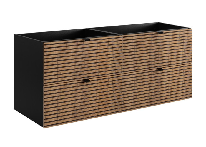 Skrinka je vyrobená z laminovanej drevotriesky v hrúbke 16 mm, čielka zásuviek sú z MDF materiálu. Vodorovné drážky na zásuvkách dodávajú skrinke moderný vzhľad a zaisťujú jednoduchú manipuláciu. Navyše, systém Soft Close zabezpečuje tiché a plynulé zatváranie zásuviek, čím zvyšuje komfort používania. Praktické detaily, ako sú dve úchytky v čiernej a striebornej farbe, ktoré sú súčasťou balenia a umožňujú Vám prispôsobiť si vzhľad skrinky podľa vlastného vkusu už pri montáži. Ku skrinke odporúčame zakúpiť aj vrchnú dosku a vrchné umývadlo alebo zápustné dvojumývadlo.