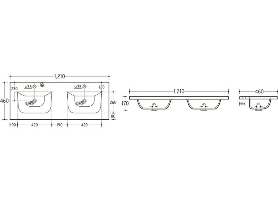 | Typ výrobku | umývadlo, zápustné dvojumývadlo, |