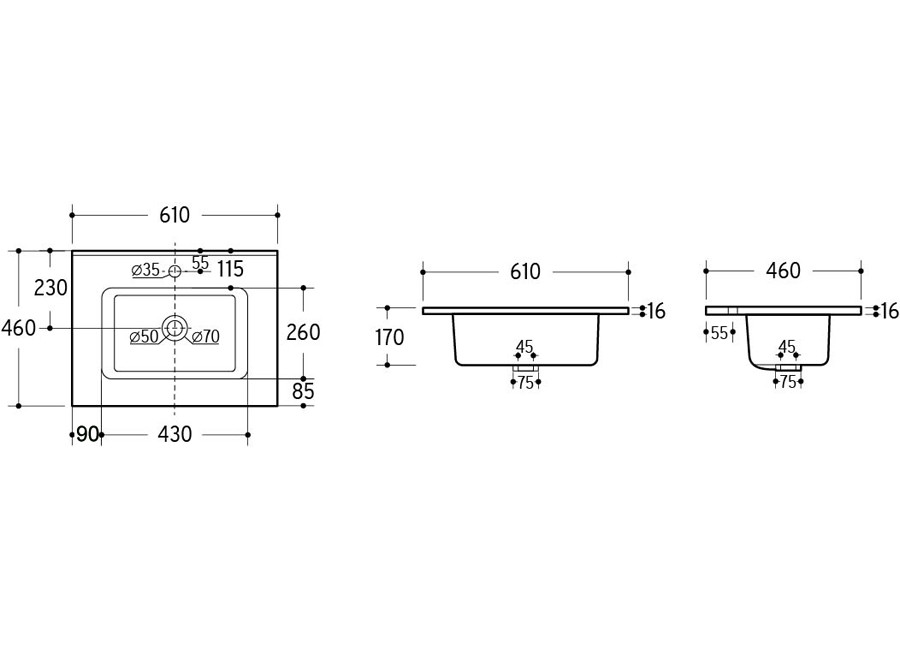 | Typ výrobku | umývadlo, zápustné umývadlo, |