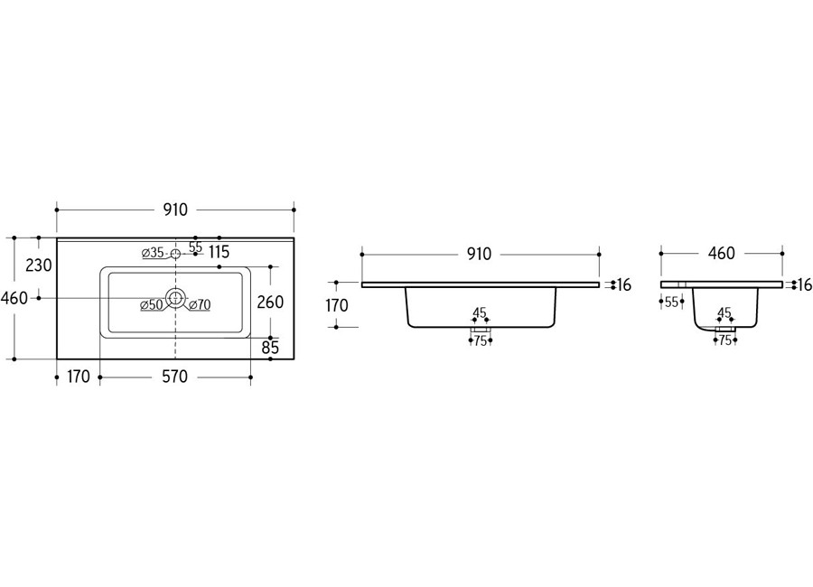 GO 90DP-8095 zápustné umývadlo 90x46 cm