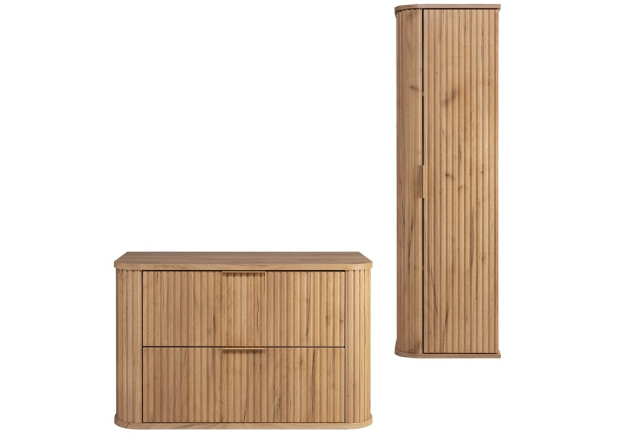 ktoré poskytujú dostatok úložného priestoru na všetky Vaše každodenné potreby. Skrinka pod umývadlo je dodávaná bez umývadla, čo Vám umožňuje vybrať si model, ktorý najlepšie vyhovuje Vašim preferenciám. Dizajn tejto zostavy vyniká zaoblenými hranami a drážkovanými čelami dvierok, ktoré nábytku dodávajú jemný a elegantný vzhľad. Zásuvky sú vybavené technológiou Soft Close, ktorá zabezpečuje tiché a plynulé zatváranie, čím zvyšuje komfort pri používaní.