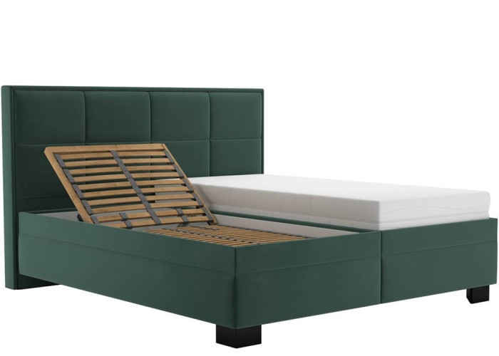 Táto zelená posteľ zaujme nielen svojou funkčnosťou, ale aj dizajnom. Ozdobne prešité čelo postele s výškou 123 cm dodáva posteli luxusný vzhľad a stane sa dominantou Vašej spálne. Odporúčaná nosnosť je cca do 130 kg na jednu polovicu, čo zaručuje stabilitu a dlhú životnosť postele.