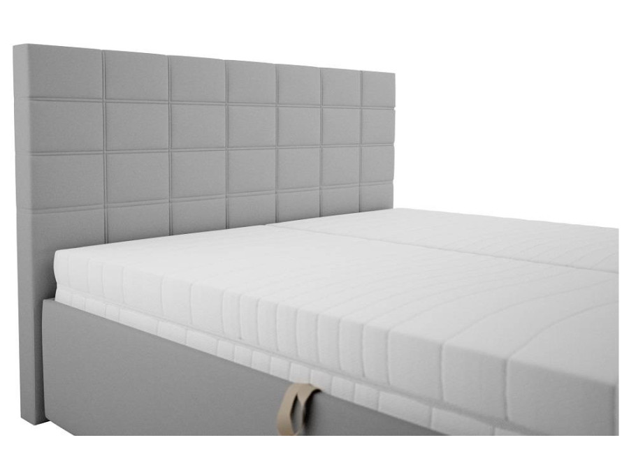 Posteľ BORA sa vyznačuje ozdobne prešitým čelom v tvare obdĺžnikov. Výška čela dosahuje 113 cm. Sivá posteľ je čalúnená kvalitným materiálom, ktorý je nielen estetický, ale aj odolný voči opotrebeniu. Vysoké postele, ako je model BORA, sú obľúbené pre svoju praktickosť a pohodlie pri vstávaní.