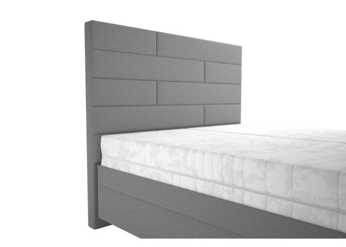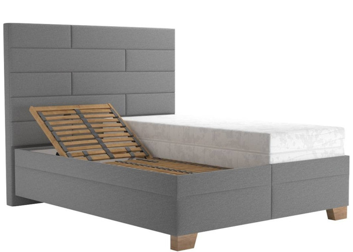 - luxusná čalúnená posteľ v elegantnej sivej farbe, ktorá dodá spálni moderný nádych,