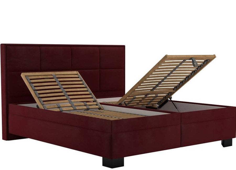 Manželská posteľ 180x200 cm s úložným priestorom ELA je čalúnená posteľ v elegantnej červenej farbe navrhnutá tak, aby splnila všetky očakávania a zároveň sa stala štýlovým doplnkom každej spálne.
