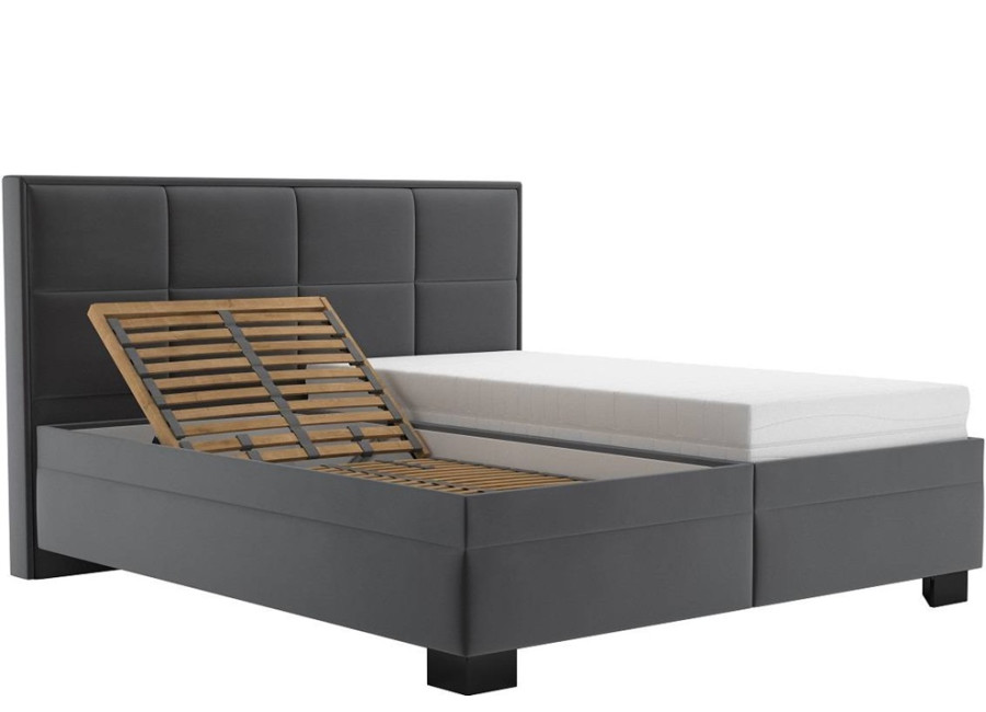 Výška nožičiek 10 cm umožňuje čistenie pod posteľou, napríklad pomocou robotického vysávača. Sivá farba čalúnenia dodáva posteli moderný a nadčasový vzhľad, ktorý sa ľahko kombinuje s akýmkoľvek interiérom.
