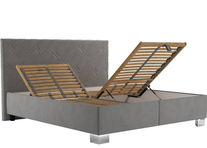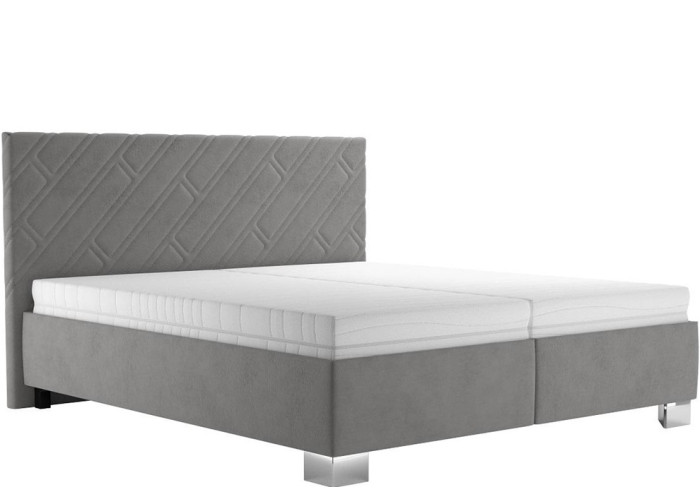 Čalúnená posteľ s roštami púta pozornosť svojím moderným dizajnom. Elegantná sivá farba s ozdobným prešívaním čela dodáva Vašej spálni štýlový vzhľad. Čelo postele s výškou 103 cm poskytuje pohodlnú oporu pri čítaní alebo relaxovaní. Ložná plocha vo výške cca 37 cm bez matraca zabezpečuje príjemnejšie vstávanie, čo ocenia najmä tí, ktorí preferujú vyššie postele. Posteľ stojí na dizajnových nožičkách s výškou 10 cm, ktoré navyše uľahčujú upratovanie pod ňou.