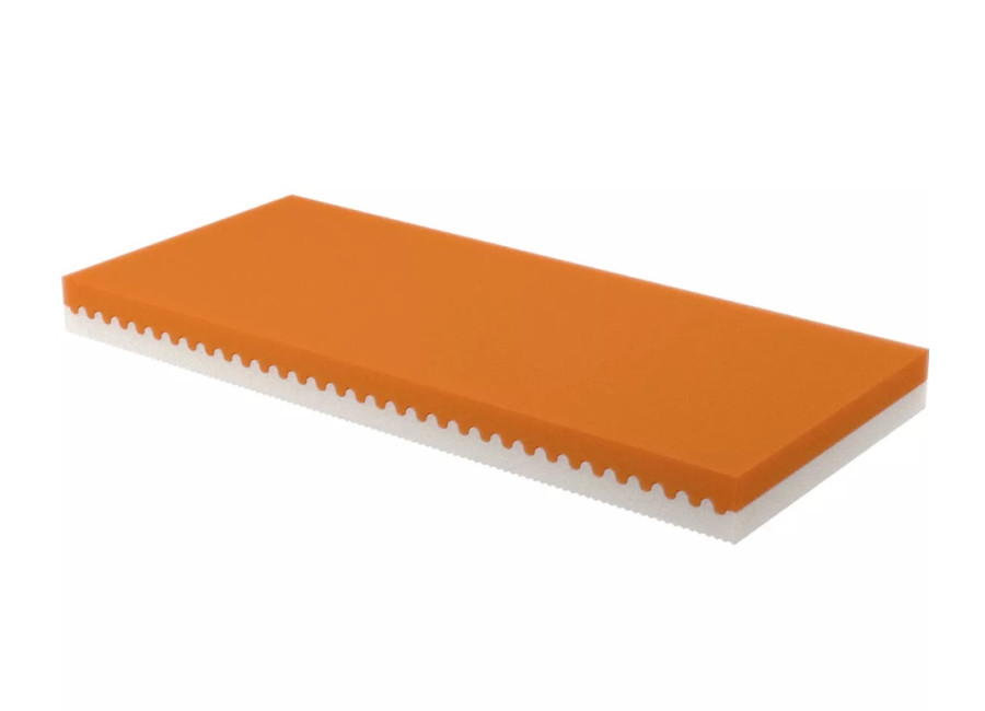 • tvrdšia strana (ružovo-oranžová): pre váhu do 80 kg ponúka tvrdú oporu, zatiaľ čo pri vyššej hmotnosti zabezpečuje stredne tvrdý komfort.