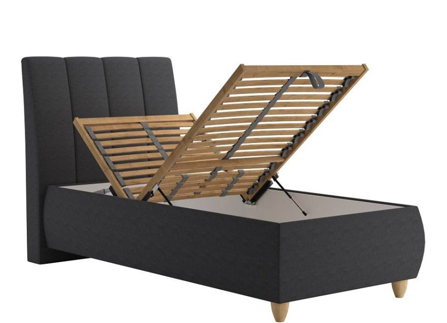 Blanar ALICE grafitová sivá, jednolôžková čalúnená posteľ 90x200 cm s úložným priestorom
