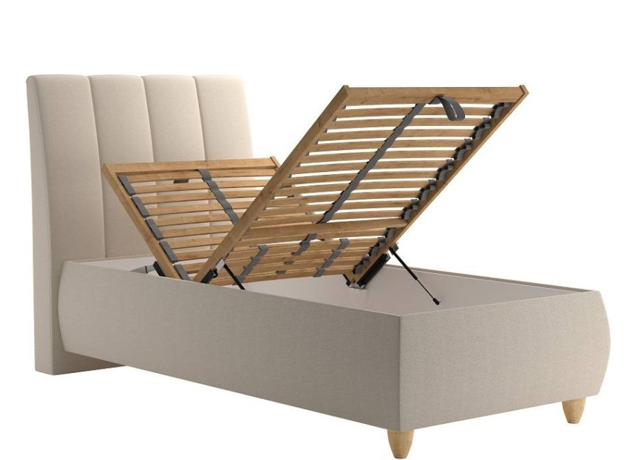 Praktický úložný priestor je ideálny pre efektívne skladovanie a ľahko dostupný pomocou plynových piestov, ktoré umožňujú jednoduché a pohodlné otváranie od nôh postele. Súčasťou postele je lamelový rošt, ktorý ponúka mechanické polohovanie hlavy (7 polôh) a nôh (1 poloha). Tento rošt sa skladá z 28 flexibilných lamiel, uložených vo výkyvných kaučukových puzdrách, pričom tuhosť lamiel v bedrovej oblasti je možné nastaviť podľa Vašich individuálnych potrieb. Rošt je pevnou súčasťou postele.