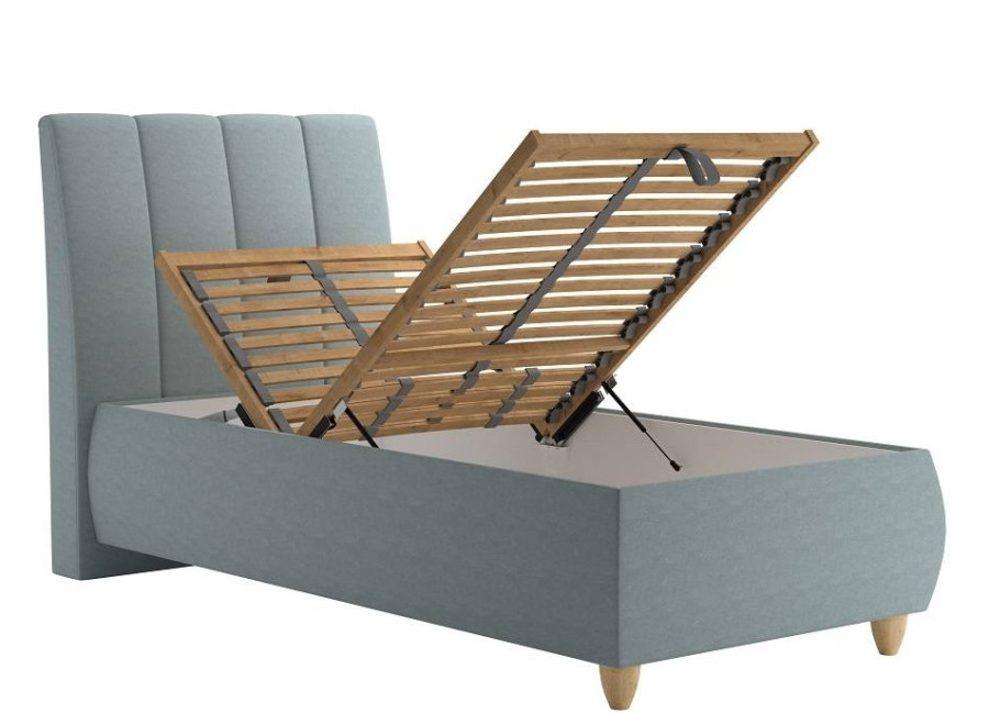 Úložný priestor postele je vhodný na posteľnú bielizeň, oblečenie alebo hračky. Prístup k nemu je jednoduchý a pohodlný – otvára sa od nôh postele pomocou plynových piestov, ktoré umožňujú hladkú a nenáročnú manipuláciu. Pevnou súčasťou postele je kvalitný lamelový rošt, ktorý ponúka možnosť mechanického polohovania – hlavu si môžete nastaviť do jednej zo siedmich polôh a nohy do jednej. Rošt pozostáva z 28 pružných lamiel uložených vo výkyvných kaučukových puzdrách, pričom jeho tuhosť možno individuálne prispôsobiť v bedrovej oblasti.