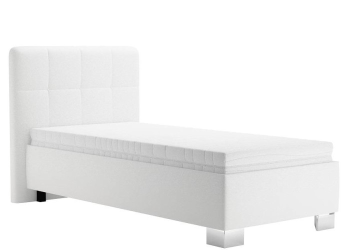 Blanar KELLY biela ekokoža, jednolôžková čalúnená posteľ 90x200 cm s úložným priestorom