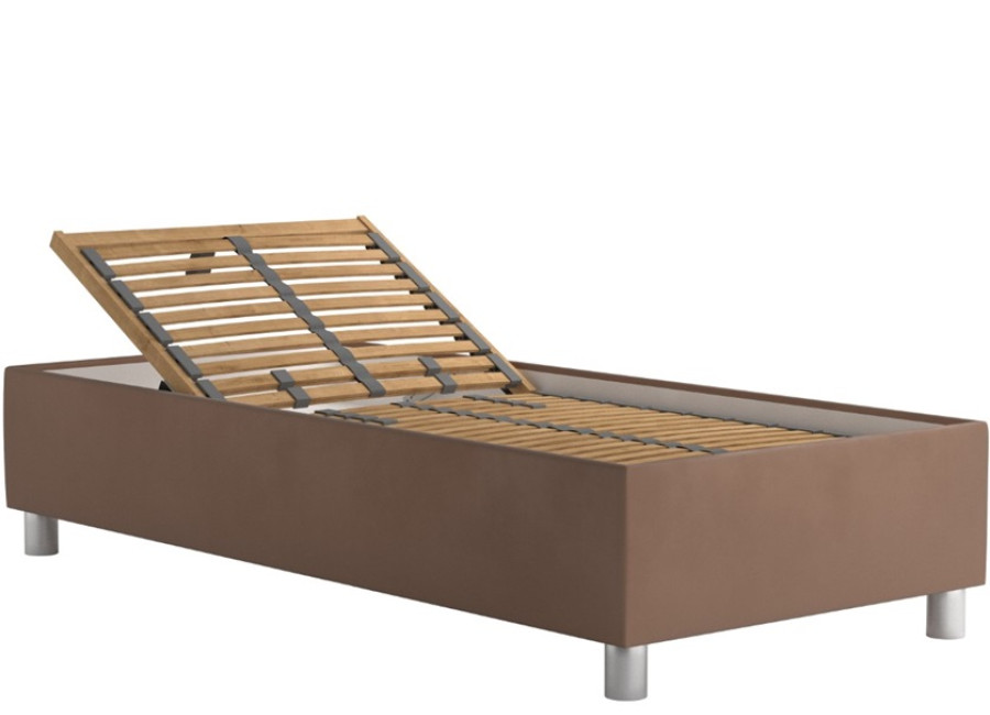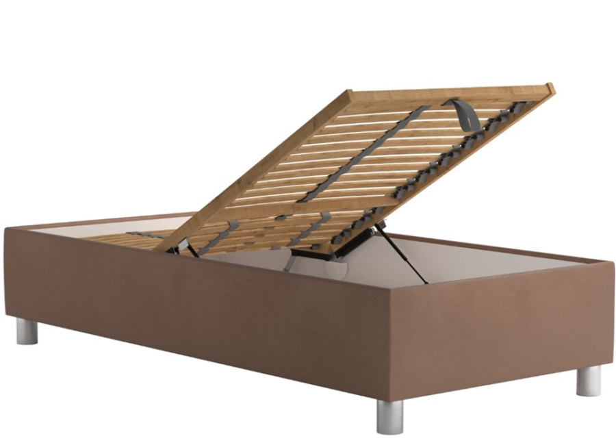 Čalúnenie postele je vyhotovené z kvalitnej a príjemnej hnedej látky Trinity 6, ktoré ľahko zapadne do akéhokoľvek interiéru. Rozmer spacej plochy 90x200 cm poskytuje dostatočný komfort na nerušený spánok a výška ložnej plochy bez matraca je približne 38 cm. Posteľ neobsahuje čelo.