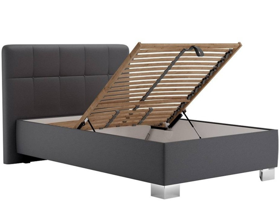 Posteľ taktiež ponúka praktický úložný priestor, ktorý sa ľahko otvára pomocou spoľahlivých plynových piestov. Tento priestor je ideálny na uskladnenie posteľnej bielizne, sezónnych odevov či iných vecí, pričom jednoduché otváranie od nôh postele zaručuje pohodlnú manipuláciu.