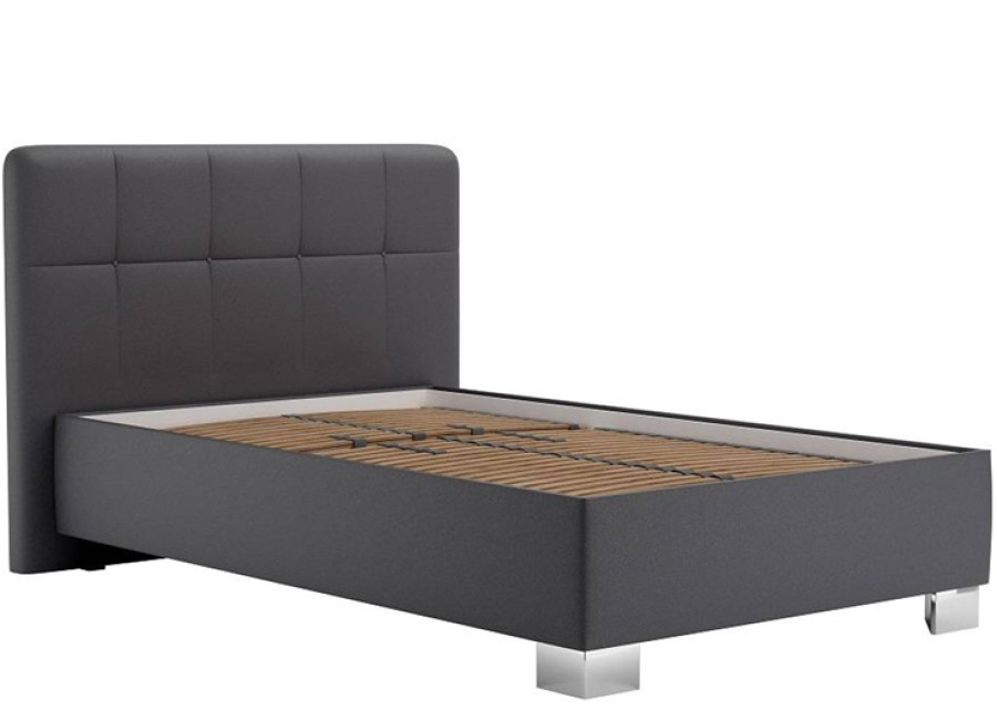 Čelo postele s výškou 111 cm je zdobené jemným, vkusným prešívaním. Dodáva posteli elegantný a moderný vzhľad, pričom zadná strana čela nie je čalúnená, posteľ je teda určená na uloženie k stene. Ložná plocha vo výške cca 38 cm (bez matraca) ponúka optimálny komfort – vhodná pre deti aj seniorov. Ďalšou praktickou výhodou sú 10 cm vysoké nožičky, ktoré uľahčujú čistenie priestoru pod posteľou a dodávajú jej stabilitu. Maximálna nosnosť postele je 105 kg.