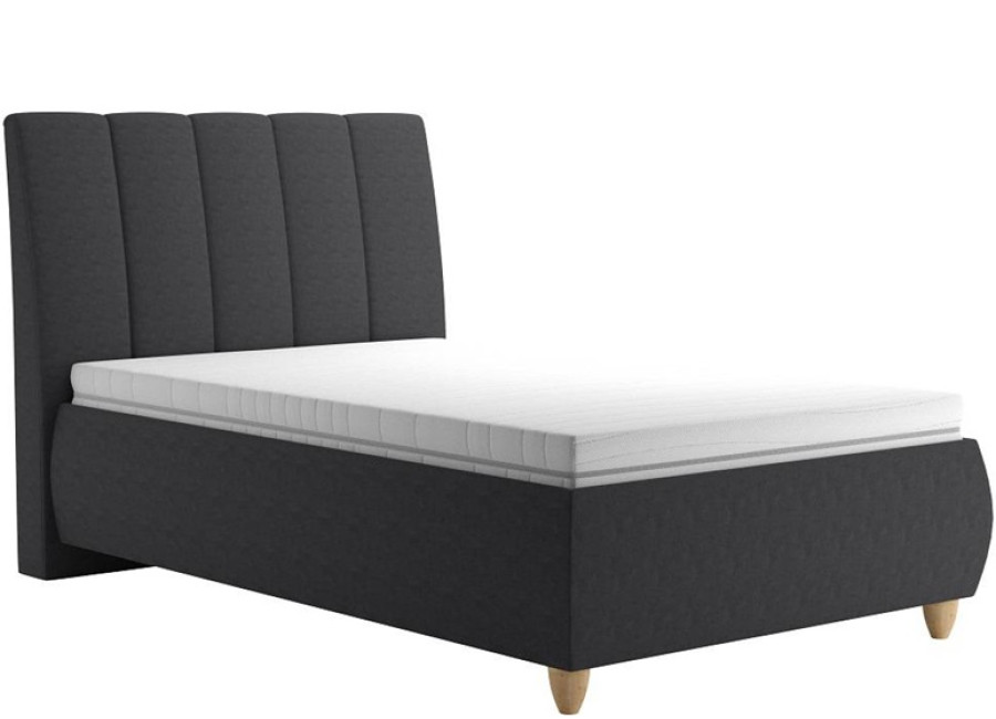 Posteľ s roštom ALICE už na prvý pohľad očarí svojím vzhľadom a kvalitným spracovaním. Látka Enjoy 24 s odtieňom grafitovej sivej dodáva miestnosti moderný nádych. Výraznou dominantou je vysoké, ozdobne prešívané čelo s výškou 125 cm. Aby posteľ dokonale zapadla do Vášho interiéru, odporúča sa umiestniť ju k stene, keďže zadná časť čela nie je očalúnená. Ložná plocha vo výške cca 44 cm bez matraca je navyše veľmi komfortná, čo ocenia nielen mladší, ale aj starší členovia domácnosti.