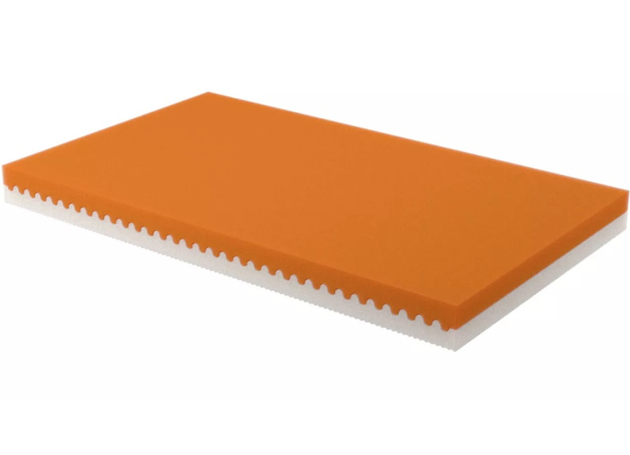 Jadro matraca je zložené z dvoch druhov polyuretánových pien s rozdielnou tuhosťou, aby ste si mohli vybrať medzi mäkšou (bielo-žltou) a tvrdšou (ružovo-oranžovou) stranou. Matrac je vyrobený bez použitia lepidiel, čo zaručuje šetrnosť k životnému prostrediu i zdravotnú nezávadnosť.
