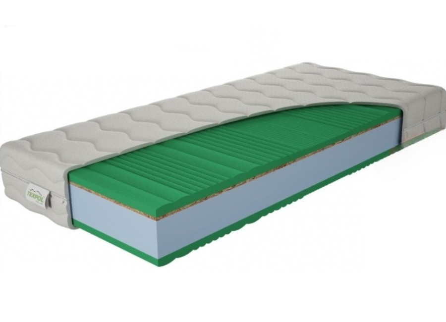 Matrac je vyrobený z kvalitných HR pien s hustotou 48 kg/m3, ktoré poskytujú vynikajúcu pružnosť, tvarovú stálosť a dokonalé prevzdušnenie. Jadro matraca je vystužené PUR penou (30 kg/m3) a prírodnou kokosovou vrstvou (2 cm) s gramážou 1300 gr/m2. Táto jedinečná kombinácia zaisťuje pevnosť a podporu pre chrbticu.