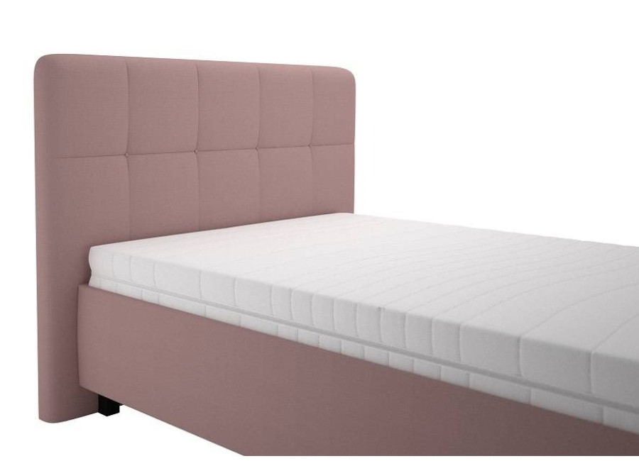 Posteľ je čalúnená v ružovej látke ENJOY 19, ktorá dodáva spálni príjemný a útulný vzhľad. Spacia plocha 140x200 cm poskytuje dostatok priestoru pre pohodlný spánok dvoch osôb. Výška ložnej plochy bez matraca je približne 38 cm, čo uľahčuje vstávanie z postele.