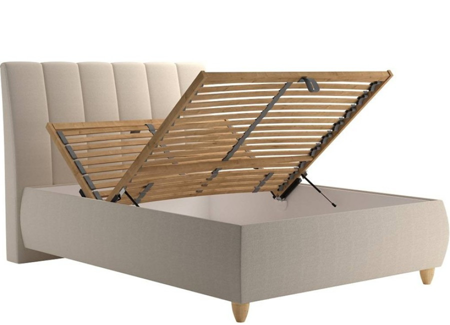 Praktickosť postele podčiarkuje priestranný úložný priestor prístupný od nôh, ktorého otváranie je vďaka plynovým piestom mimoriadne jednoduché. Výška ložnej plochy 44 cm (bez matraca) v kombinácii s 10 cm vysokými nožičkami zabezpečuje optimálnu ergonómiu pri vstávaní z postele.
