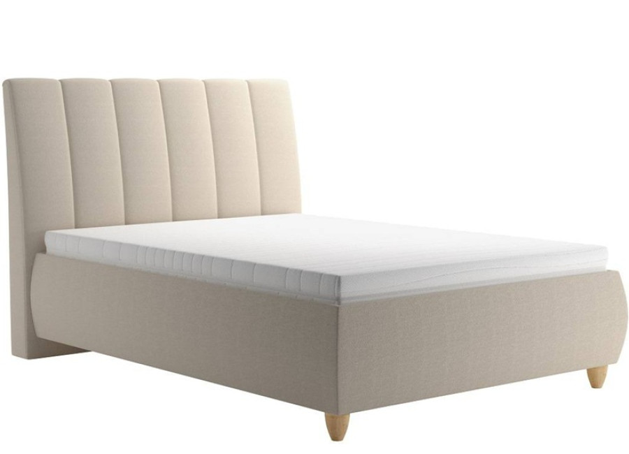 Dominantou postele je elegantné, ozdobne prešívané čelo s výškou 125 cm, ktoré dodáva spálni moderný vzhľad. Béžové čalúnenie vnáša do priestoru pocit tepla a prirodzenosti, pričom sa ľahko kombinuje s akýmkoľvek interiérovým štýlom.