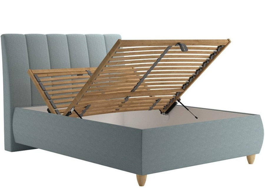 Jedným z ozdobných prvkov postele je ozdobne prešité čelo s výškou 125 cm, ktoré pridáva posteli elegantný vzhľad. Praktický úložný priestor pod posteľou je prístupný od nôh a jeho jednoduchá manipulácia je zabezpečená kvalitnými plynovými piestami. Tento úložný priestor je ideálny na uskladnenie posteľnej bielizne, sezónnych vecí či iných predmetov.