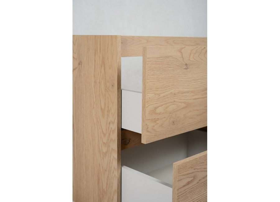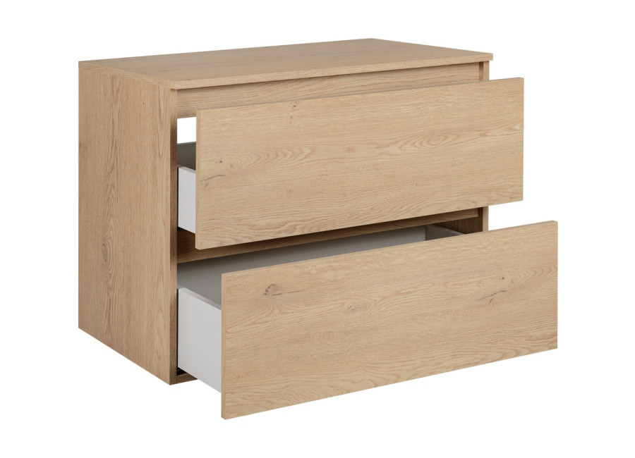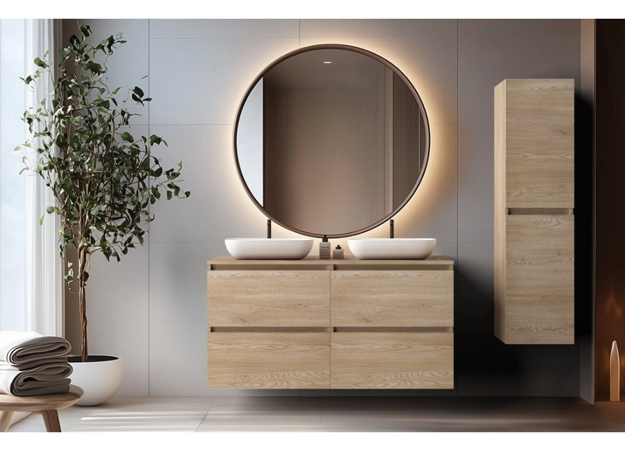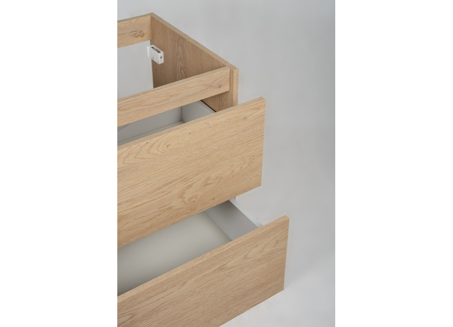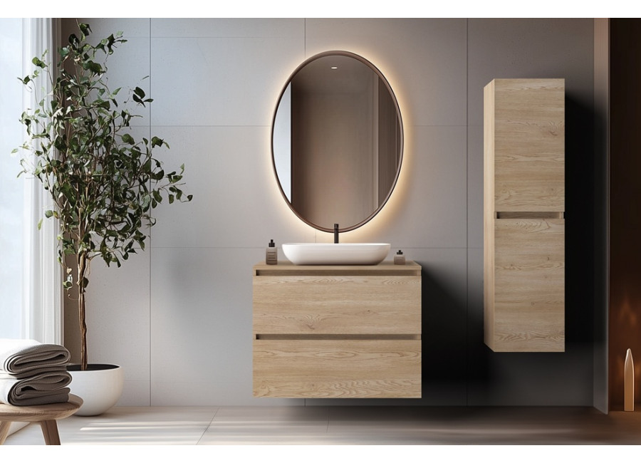 Laminovaná drevotrieska s ABS hranami sa je vhodná aj do vlhkého prostredia kúpeľne. Svetlý dubový dekor vytvára príjemnú, útulnú atmosféru a prirodzene sa začlení do akéhokoľvek interiéru. Vďaka závesnému systému pôsobí skrinka ľahko a necháva priestor pod sebou voľný – uľahčí Vám tak upratovanie.
