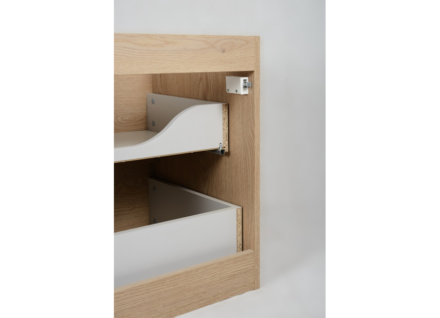 Praktické riešenie ponúkajú dve priestranné zásuvky s kvalitným výsuvom na guľôčkových ložiskách. Systém tichého dovierania SOFT CLOSE zaručí, že sa zásuvky vždy zatvoria jemne a nehlučne. Horná zásuvka je špeciálne upravená pre plochý sifón, čím získate výrazne viac úložného priestoru oproti bežným skrinkám.
