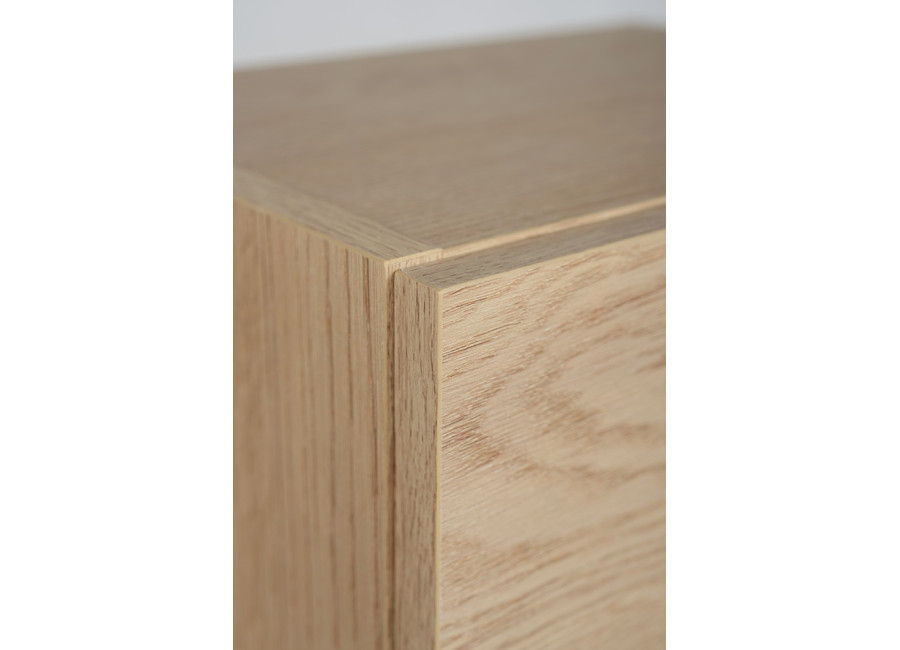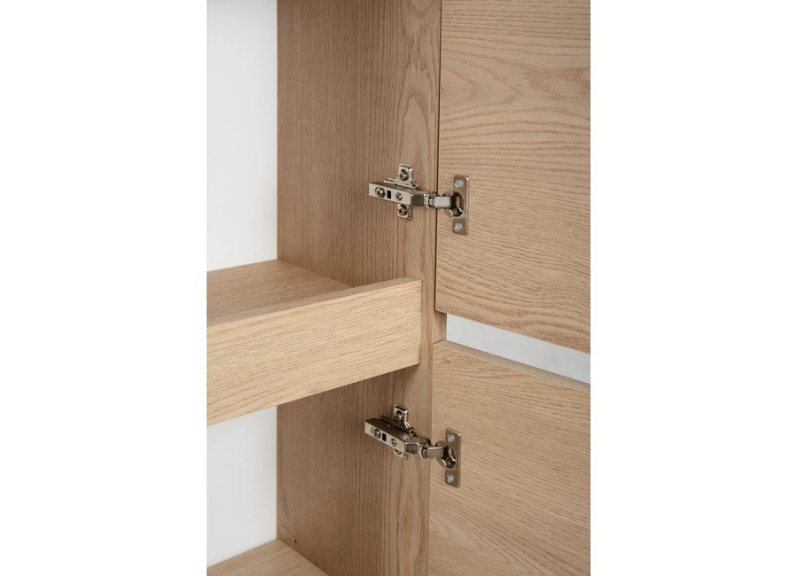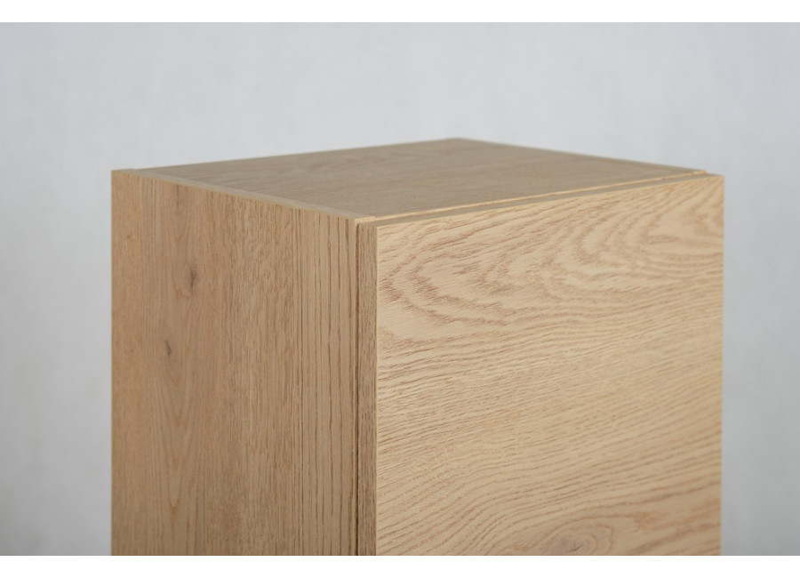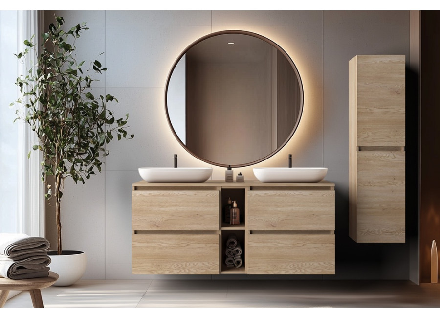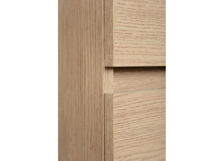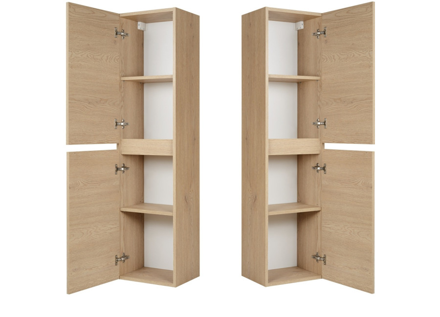 Skrinka je vyrobená z kvalitnej laminovanej drevotriesky a ABS hrany zabezpečujú vysokú odolnosť voči vlhkosti. Farebné prevedenie v odtieni dub svetlý prináša do kúpeľne prirodzený a teplý vzhľad, ktorý sa ľahko kombinuje s rôznymi štýlmi interiéru.